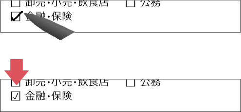 選択項目は、紙ベースのものと同様に、点線をなぞる形で○をつけることができます。